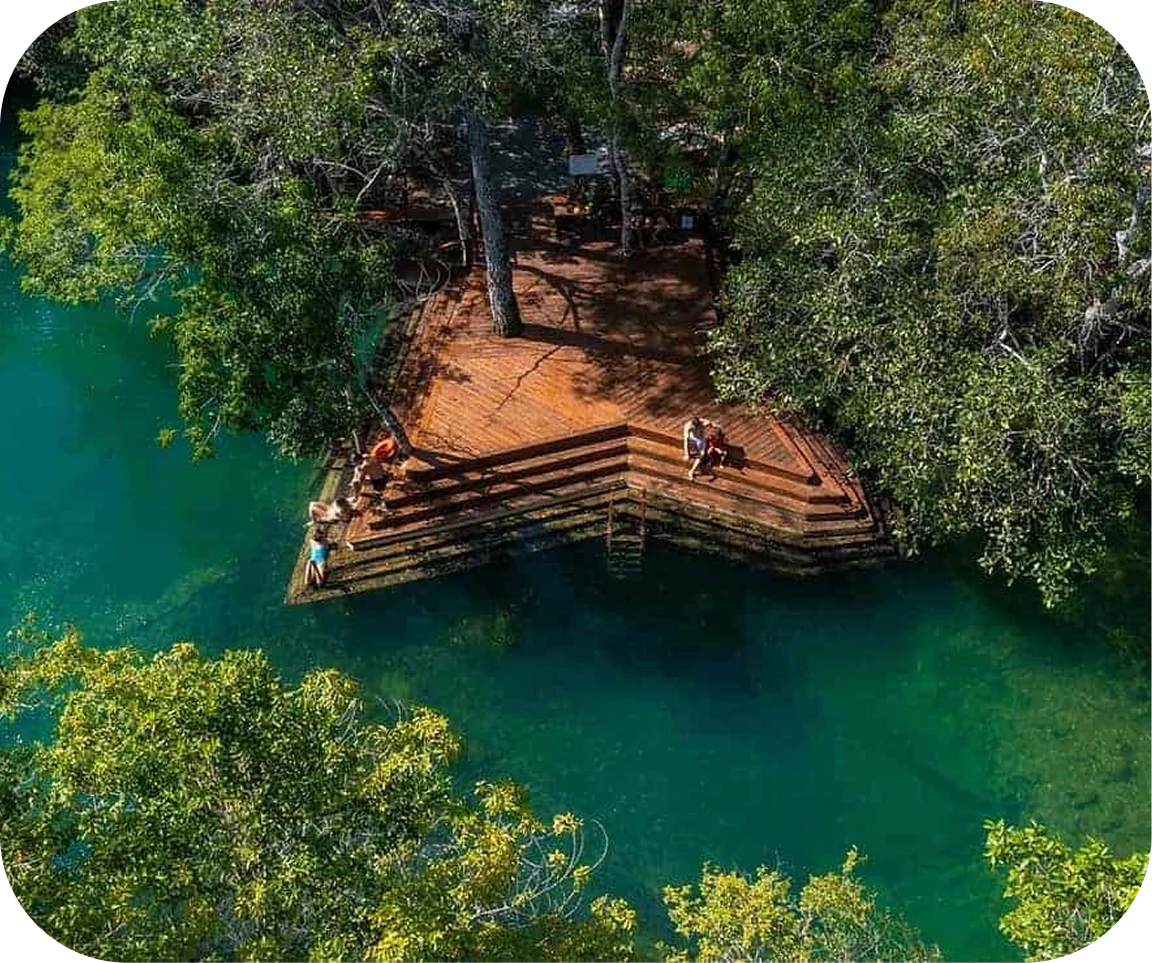 lagoa cristalina, grutas naturais, fauna abundante e flora exuberante.